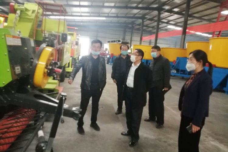 2020年3月10日下午(wǔ),市農業農村局孔局長,農業黨委副書記孫書記一行4人,來到山東新WWW.91N.COM指導考察工作。中心領導首先察看了生產車間在疫情(qíng)期間(jiān)恢複生產的情況,觀看了獲得國家農機補貼的三個產品以及公司研發的新型農機產品,對(duì)於新WWW.91N.COM農機產品的生(shēng)產、銷售表示很大關注。