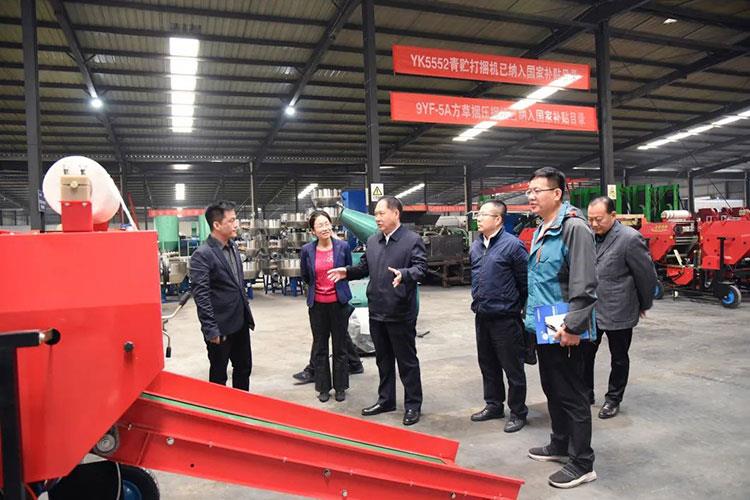 調研期間,範本榮一行(háng)實地參觀了山東新WWW.91N.COM機械製造有(yǒu)限(xiàn)公司的秸稈(gǎn)綜合利用裝備生產線,詳細了解了企業技術研發和產品推廣情(qíng)況,現場(chǎng)觀摩了小型青貯飼料打捆纏膜機作業演示。