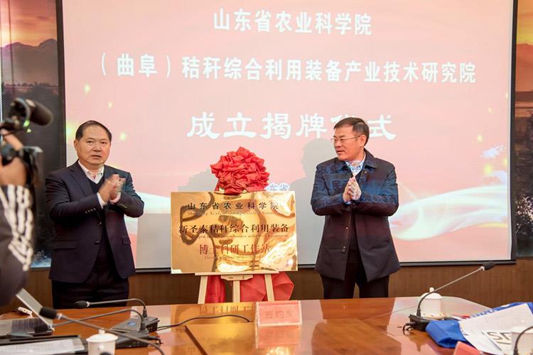 曲阜市委副書記崔加清、山東省農機科學研究院理事長、黨委書記範本榮為山東省農業科學院(曲阜)秸稈綜合(hé)利用裝備產業(yè)技(jì)術研究院簽約揭牌(pái)儀式暨新(xīn)聖(shèng)泰秸稈綜合利用裝備博士科研工作站揭牌。